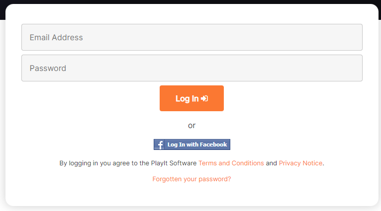 To access PlayIt Live, enter your account email address and password, or log in using your Facebook account.