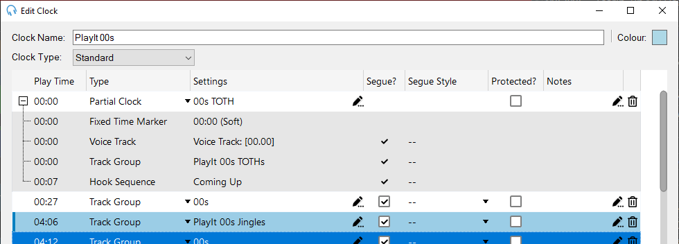 Once inserted, the partial clock items will be dynamically added to the parent clock verbatim, including any fixed time markers at their absolute positions.