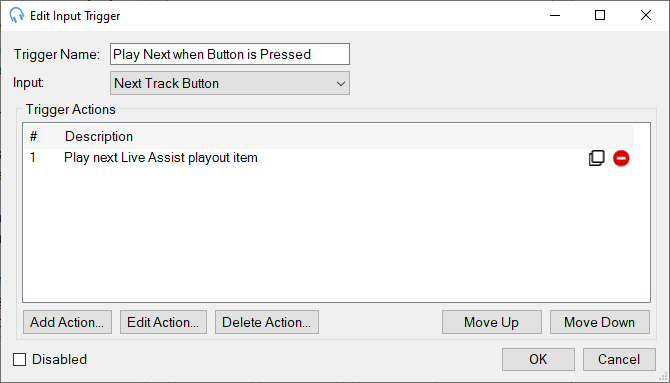 Check this box to temporarily disable the trigger without deleting its configuration. While disabled, the trigger will not execute even when its associated Named Input is received. This is useful for testing or temporarily suspending automation without losing your configuration.