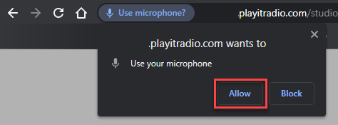 Upon connecting to Remote Studio for the first time, you will be prompted to grant your web browser access to your microphone. You should click Allow to proceed.