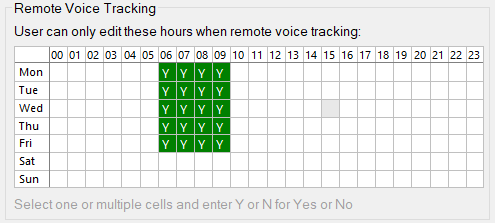 On the Manage Users window, click Add New. Enter a display name, username and password for the user. Use the Remote Voice Tracking grid to select the hours the user is allow to remote voice track into.