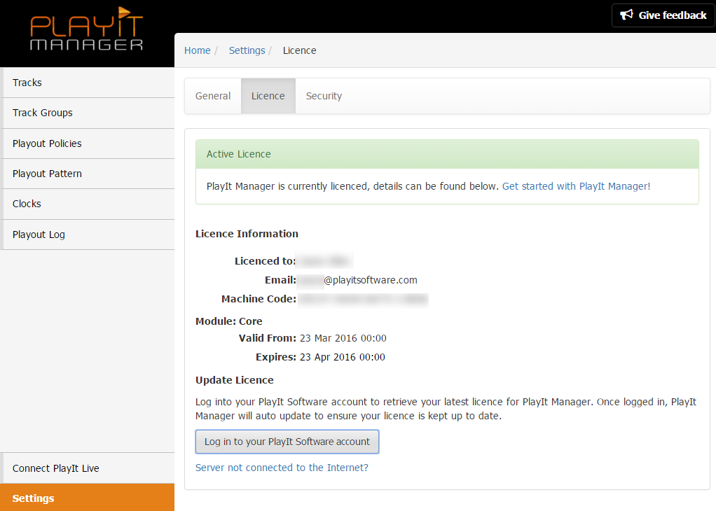 PlayIt Manager will attempt to automatically keep your licence up to date based on your PlayIt Manager subscription.