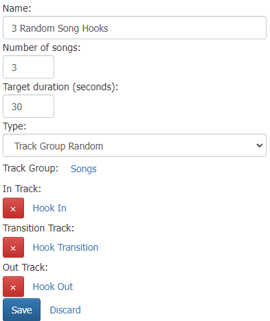 ![]() Hook Sequence: A hook sequence will play only the hooks of tracks back to back within a short clip. This allows you to promote songs that will be playing within the next hour or just songs from a specific track group.
