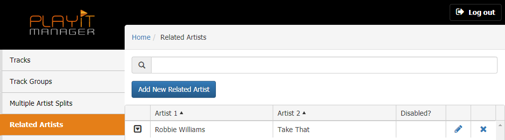 Related Artists are used to associate artists with each other so they are considered as the same artist when scheduling with playout policies. For example, you may not want a solo singer in a band to be played close a song by that band, e.g. Robbie Williams and Take That.