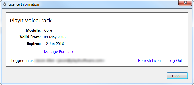 When you have a valid licence this will be displayed on this window. If you have recently purchased a licence and are logged in, click the Refresh Licence link to fetch the latest licence from the server. While you are logged in, the software will periodically check for the latest licence to ensure you are up to date.