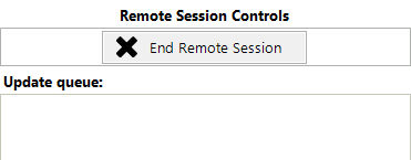 This section shows you the queue of commands that are sent back to the server when making changes. You can also log out by clicking the End Remote Session button. It is important to end session when you have finished to allow other users to connect if necessary.