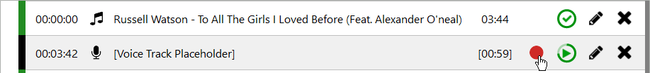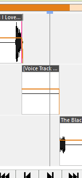 PlayIt Live will show the start and end of the tracks with a gap for the voice track placeholder: