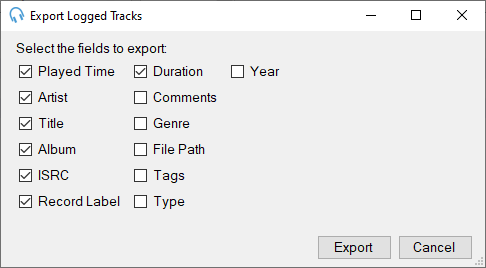 The Logged Tracks window show a list of the recently logged tracks. It is possible to export the visible list to CSV format to import into Excel or another spreadsheet application for reporting.