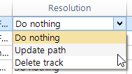 Any tracks that are found that have the audio file missing will be displayed. Click in a Resolution cell of a row to choose what to do with the track: