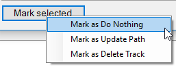 You can Do Nothing, Update the path to a file you can find on the file system, or Delete the track. When choosing Update path you can choose a new path by selecting a path from the New Path column. After selecting a new path, PlayIt Live will check all the other tracks to see if they have also been moved to that location. If so, it will also update these to Update path if they have not already been resolved.