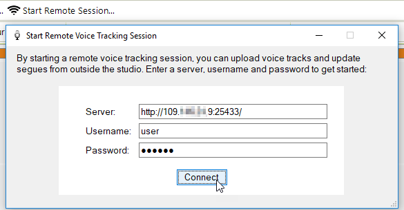 Once you have set up the above, contact your remote trackers sending them the remote URL and their username and password. Remote voice trackers are required to use PlayIt VoiceTrack to connect. Please refer to the PlayIt VoiceTrack documentation for details of setup of remote voice tracking from a remote voice tracker's perspective.