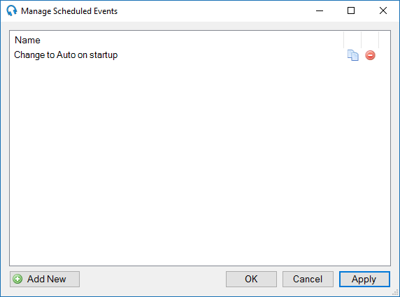 Remember to click Apply or OK on the Manage Scheduled Events window to apply your changes.