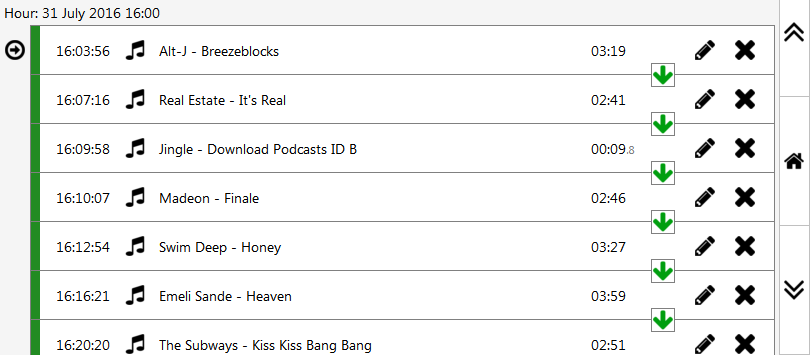 Start by dragging tracks into the log for the hour you wish to voice track: